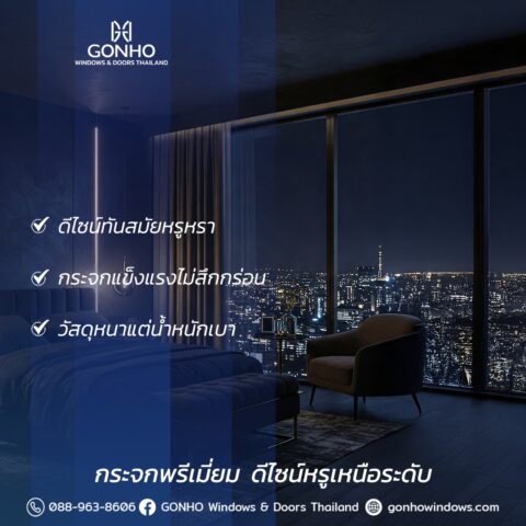 GONHO Premium Glass Windows คือตัวเลือกที่ตอบโจทย์ทั้งด้านความงามและการใช้งาน ด้วยวัสดุเกรดพรีเมี่ยมที่ผ่านการออกแบบมาอย่างพิถีพิถัน เพื่อยกระดับทุกพื้นที่ของบ้านให้ดูมีสไตล์และใช้งานได้ยาวนาน